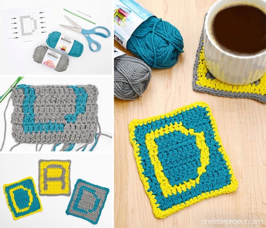 Protect your tables with these monogram crochet coasters made using a tapestry crochet graph. It’s so fun to make these DIY crochet coasters in your favourite colour combination to match your decor!